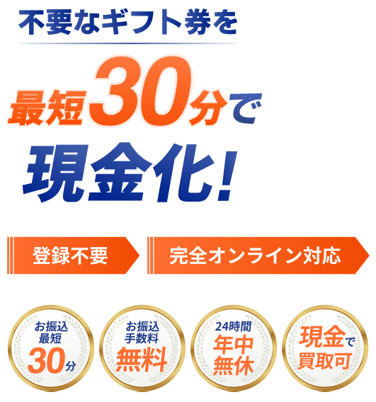 当サービスでは、不要なギフト券をオンラインで簡単に買取いたします。